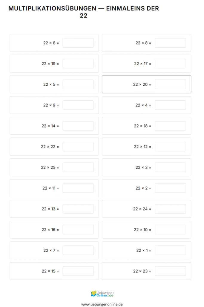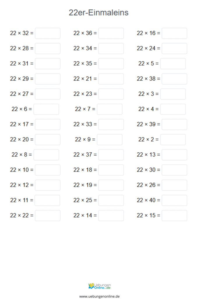 Die Beherrschung der 22er Reihe Einmaleins unterstützt das mathematische Verständnis und verbessert die Rechenfertigkeiten mit höheren Zahlen.