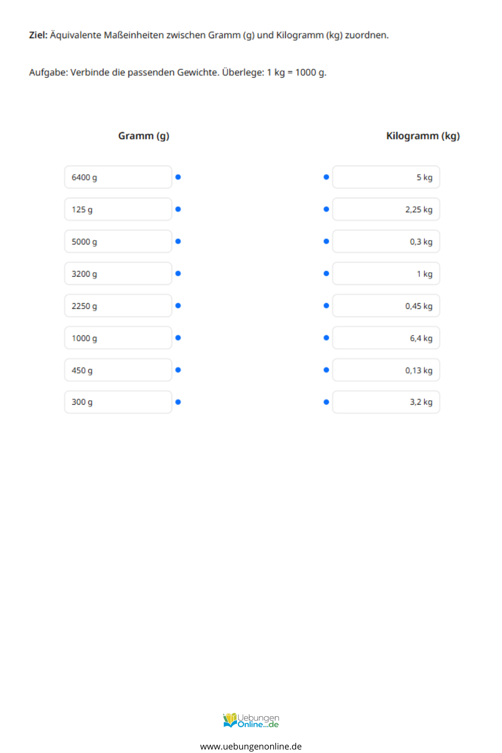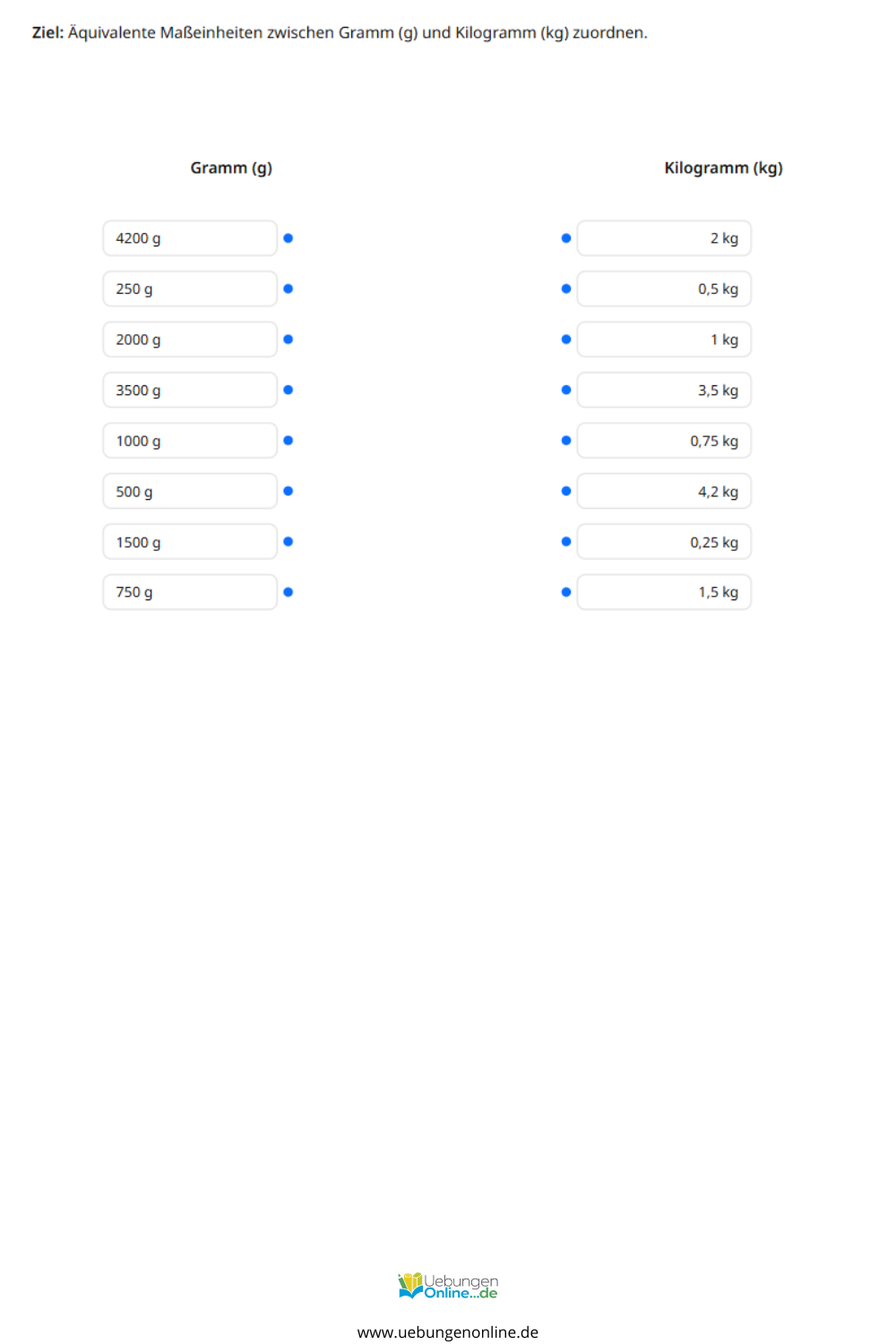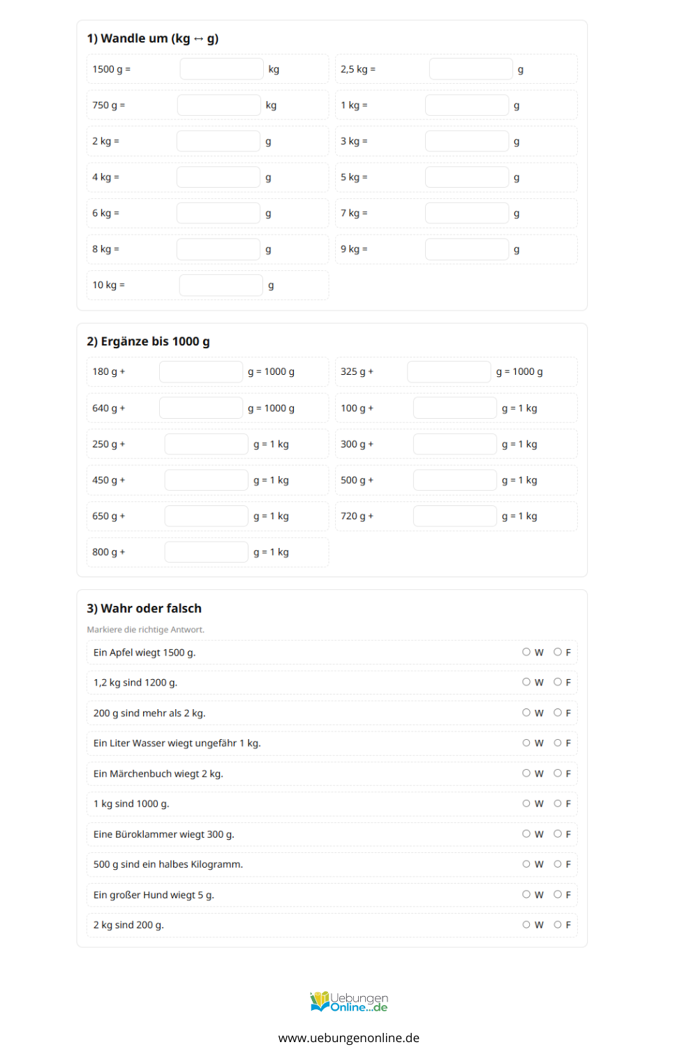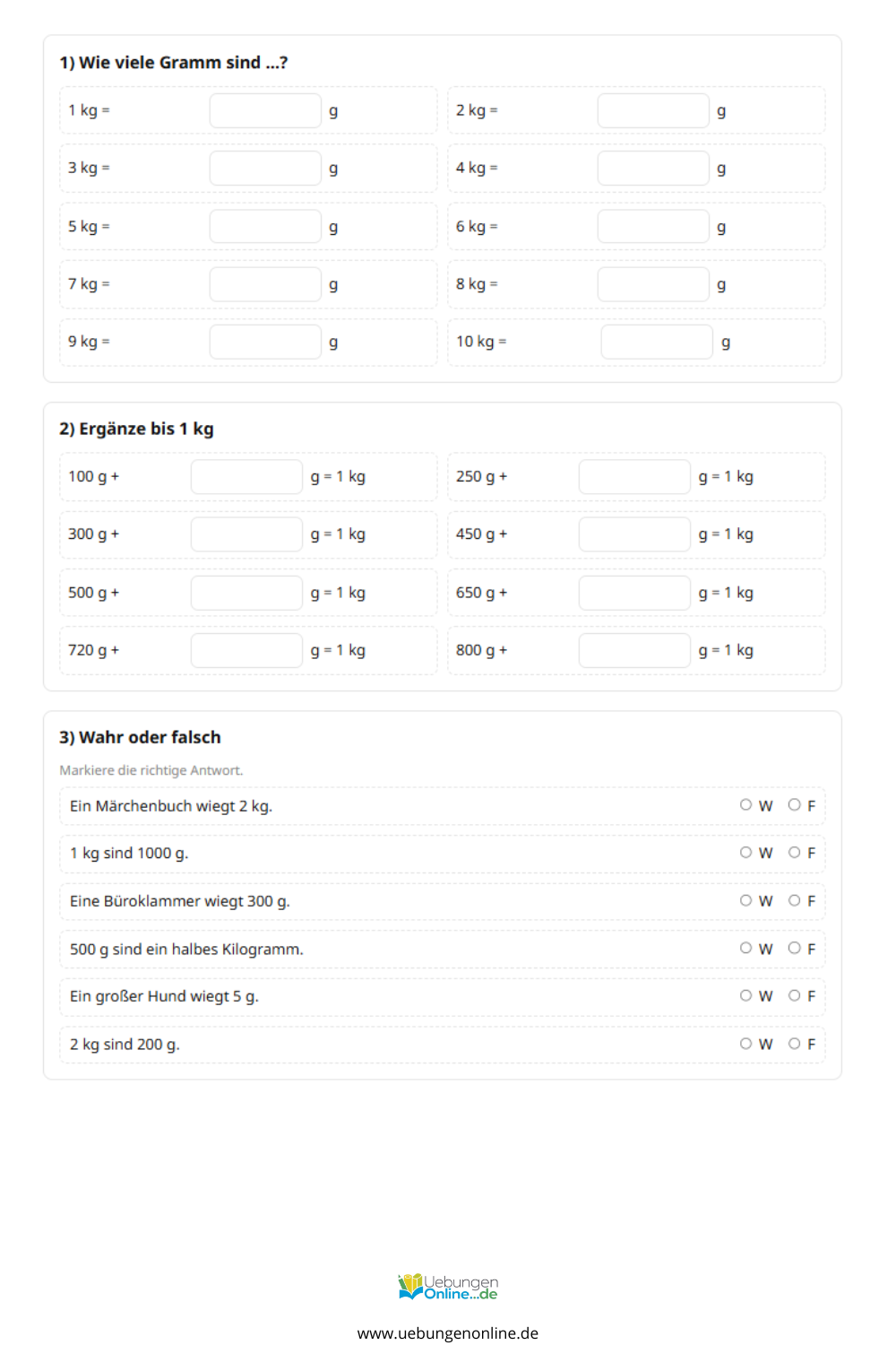 Interaktive Übungen zu Gewichten in der 3. Klasse
