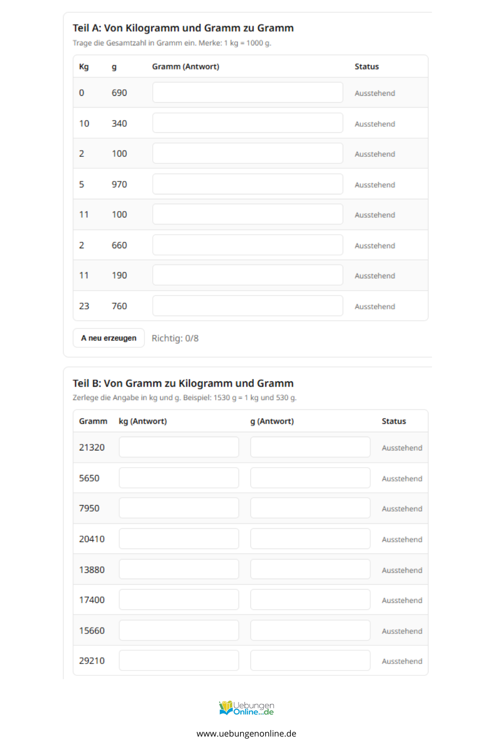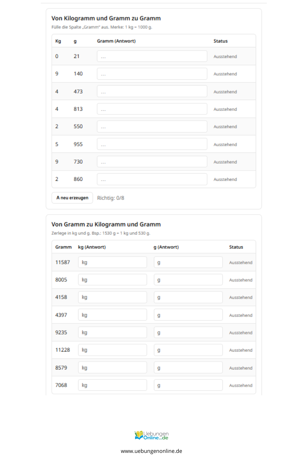 Gewichte – Arbeitsblätter und Übungen zum Ausdrucken